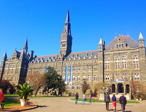 Georgetown University建立于1789年,是美国最古老的耶稣会和天主教大学。其悠久的历史如同其雄伟的罗马式建筑一样让人着迷。该校知名校友大多在美国和世界各国的公共事务领域中成绩斐然,其中包括美国前总统比尔·克林顿、现任美国最高法院大法官安东宁·斯卡利亚、数十位美国州长和国会议员、数十个国家的元首和政府首脑、王室成员及外交官。