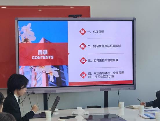 实习生的能力和表现进行了高度评价;本科实习生郭晨宇汇报了在企业中的实习经历与收获,并对校企合作实习基地建设的初步方案进行了介绍。学院对企业的大力支持和对学生的悉心培养表达了感谢,并进一步介绍了学院的发展现状及学生的基本情况。在热烈的交流氛围中,校企双方围绕实习基地建设展开深入探讨,明确了以市场需求为导向,以实践能力培养为重点的合作方向,初步规划了实习基地的运行机制和学生实习岗位的具体安排,力求为学生创造更加优质、高效的实习环境,让学生在实践中深化理论知识理解,提高解决实际问题的能力,更好地适应未来职业发展需求。