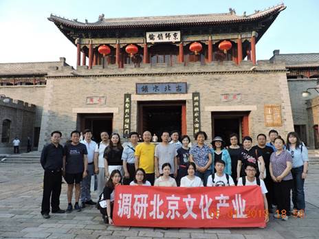 伴着落日余晖,风尘仆仆的参观一行在古北水镇楼前合影留念。返程大巴上,大家合唱的《我的中国心》《万里长城永不倒》为此次“缅怀中国抗日先烈,调研北京文化产业”主题党日活动画上圆满的句号。