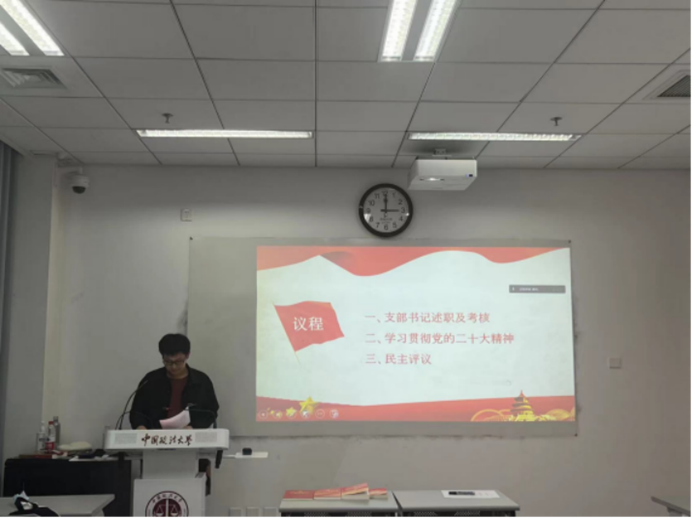 20级学硕党支部在综合楼417召开了组织生活会与民主评议会,会议主要围绕三项工作展开,一是支部书记述职与考核;二是学习贯彻党的二十大精神;三是开展批评与自我批评和民主评议。会议由党支部书记翁壮主持。