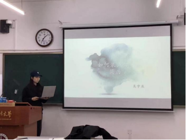 吴宇辰同志通过“一张纸够不够呈现一面”、“如何写无虚笔的经历”、“真诚永远是第一必杀技”三个环节细致分析了如何装点简历,特别提到应当去繁就减、聚焦需求、扬长避短、注重细节、善用表格、深挖兴趣等面试经验。