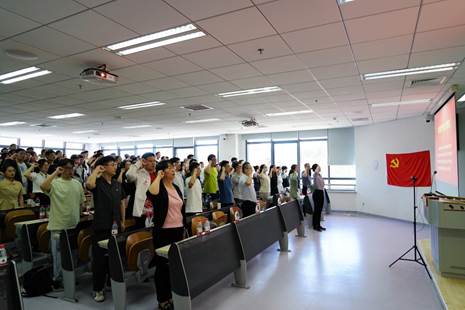 随后,在21级MBA党支部书记孟露带领下,与会党员全体起立,右手握拳,重温入党誓词,表达了为共产主义奋斗终身的意愿和决心。
