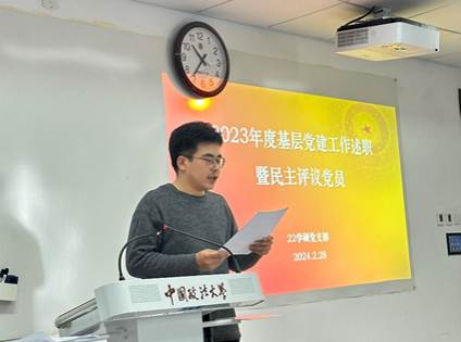 大会第一项,党支部书记张国栋同志对支部上一年度的工作进行述职,总结了一年来支部工作的成果与进步,也对现阶段支部存在问题及原因进行了报告,并提出相应的改进措施。在2023年度,党支部坚决贯彻党的二十大精神,努力把基层党组织建设成为有效实现党的领导的坚强战斗堡垒。强化政治理论学习,以理论学习促进本领提升;强化组织功能,发挥党建引领作用;健全支部工作机制,涵养良好支部生态。