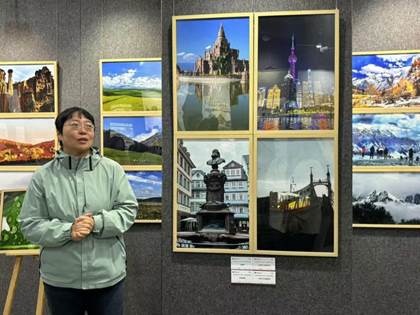 胡新波老师也以一个老党员、老研究生工作者的身份寄语青年学生,努力学习,做对社会有用的人。祁志锐老师用切身体会,谈了他对“艺术与人生”的感悟。随后,在王雁异老师的引导下,党员同志们观看了成果展。此次展览共展出书画作品75幅、摄影作品103幅及手工作品百余件,每一件作品都凝聚了老党员们对家国情怀的深刻理解和对美好生活的热爱。祁志锐老师亲自为同学们讲解了作品的创作背景和艺术特色,他深入浅出的讲解让党员同志们对作品有了更深入的理解,同时也引发了同学们对生活态度和生活方式的思考。