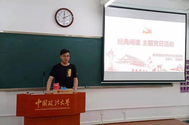 经济学本科生党支部于2021年6月18日在端升楼307举办了经典阅读主题党日活动,党支部书记白剑宇主持了此次会议。