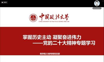 2022级专硕党支部通过腾讯会议线上展开了二十大专题学习会,会议主题为:“掌握历史主动 凝聚奋进伟力”,会议由组织委员赵碧璇同志主持,22专硕党支部全体党员参与此次学习会。