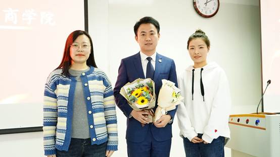 图3:2022级MBA学生代表上台向刘彪老师献花表示欢迎