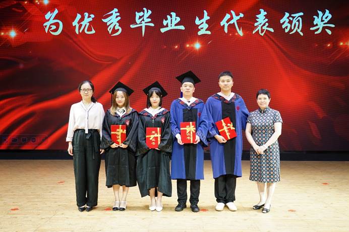 优秀毕业生表彰决定,院长助理郭颖与巫云仙两位教授为优秀毕业生代表颁发奖状。