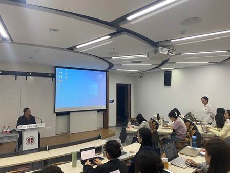 首先,孙教授先与在场的听众进行了互动,了解同学们本科专业背景情况,以便更好地进行交流。孙教授以一个简短的故事引入,提出写材料的本领要引起同学们的高度重视。孙教授以自己年轻时求学的经历,教育引导在场学生注重提升写作水平。同时,利用好法大的资源,强化法律相关知识的学习也是提升同学们综合素质的关键。
