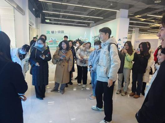 上午九点三十分,师生参观团抵达了百度Apollo Park。一部分师生先行前往无人驾驶网约车进行试乘,另一部分则首先来到百度Apollo用户体验中心。在这里,师生观看了百度关于无人驾驶的宣传片,专业讲解员对无人驾驶技术及发展做了简要介绍。
