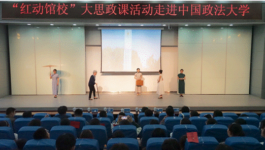 接下来,来自新四军纪念馆的工作人员和演员们带领现场的师生跨越时空,身临其境感受那段历史。讲解员老师简要介绍新四军背景,激起法大学子对新四军历史的情感共鸣,再从四个篇章、四种舞台给我们带来一堂具体生动又感人肺腑的红色思政课。