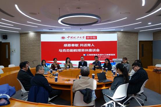 党委书记李欣宇出席座谈会,并与荣休教师马克态副教授及工商管理系教师共同回忆了马老师在法大度过的美好时光并表达了对马老师的不舍和真挚祝福。