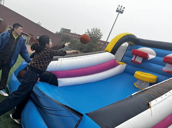 分工会热情地组织了教职工参与这场盛会。教职工们不仅参与了经典田径项目,例如跳远、百米赛跑、接力跑等,还积极参与了众多趣味集体项目,例如投篮挑战、踢毽子、“同心协力”、“龙舟竞走”等,这些项目不仅考验了参赛者的力量、速度和持久力,还为教职工们提供了一个展示个人风采的机会,提供了一个彰显团队凝聚力的舞台。