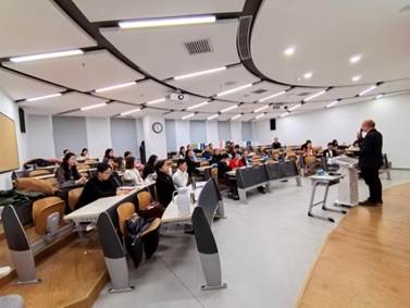 何欣老师谈到因职业习惯观察到观摩课堂上学生坐得很满、人较多,教师层层递进方式进行讲解,学生都是在认真听讲跟着老师的上课节奏参与其中,学生自己带电脑都在认真看课件。有这样一些爱学生,为每次讲课精心准备的青年老师们,学生是很幸福的。