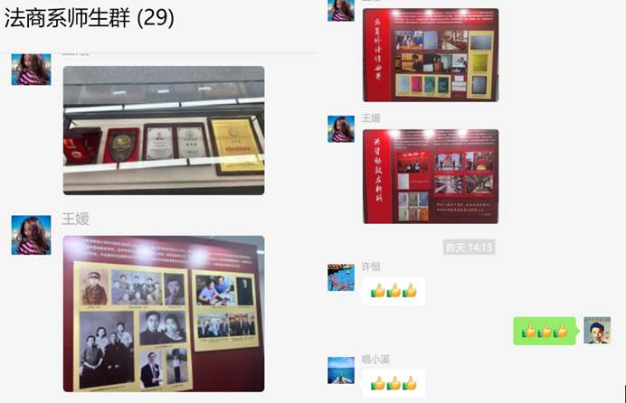 完成现场学习后,同学们又采用图片直播的形式给未到现场的师生进行了分享。此次学习活动不仅是一次精神的洗礼,更是一次行动的号召。法商管理系师生将以张晋藩先生的先进事迹为动力,打造法商特色学科,继续在教书育人的道路上砥砺前行,为培养具有社会责任感和专业素养的法商人才而不懈努力。