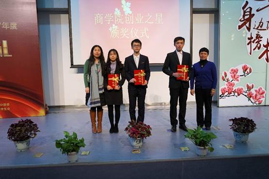创业之星获得者名单,巫云仙老师上台一同为获奖者颁奖并合影留念。