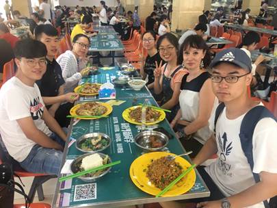 朗格卢瓦在授课之余,积极邀请与同学们共进午餐,畅谈中法文化,更在最后一节课请大家品尝了法式早餐,牛角面包巧克力面包配上咖啡,在法国电影里一起欢笑,让学生们体验了法式风情,进一步了解了法国的风土人情。