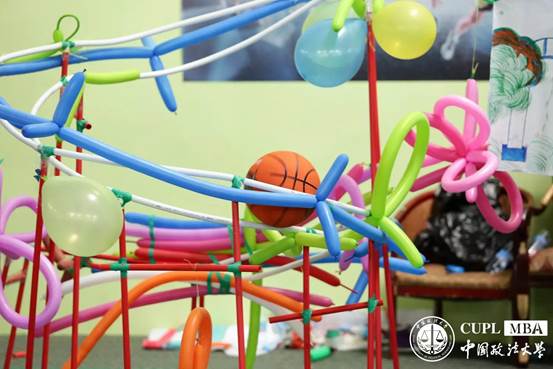 本次实践课堂不仅考察学生的团队协作能力、动手实践能力,同时还将商业运营方式与技巧蕴藏其间,寓教于乐。在各个小组领取100万元启动资金、角色卡贴,进行施工领域确认后,随即进行建材采购,组内进行任务分发,男女分工与协作共建轨道,并利用胶带、玻璃丝带、气球进行装饰。与此同时,部分成员进行海报图设计,以传达理念和项目品牌形象。由共同绘制草图到轨道框架搭建,再到整体装饰,每个人各司其职,发挥想象与特长,相互配合、交流沟通,进行紧张忙碌的制作工作。