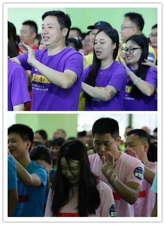 在“乌鸦与乌贼”的拍手游戏里,大家在教练的故事叙述中,找到赛点进行打手游戏,现场欢乐声此起彼伏。随后,在“3、2、1”的节拍中大家合掌拍手,用于音浪传递,在掌声接力中,一层层喜悦的热浪层层推进,一声声“创新-展翼”的主题口号及呐喊声将2日的活动推向高潮。在一系列的热身运动中,不仅需要整体同学默契配合,还要灵活协调的肢体协调,在丰富有趣的游戏环节中,大家迅速消除了陌生感与隔阂,加深了彼此之间的良好印象。