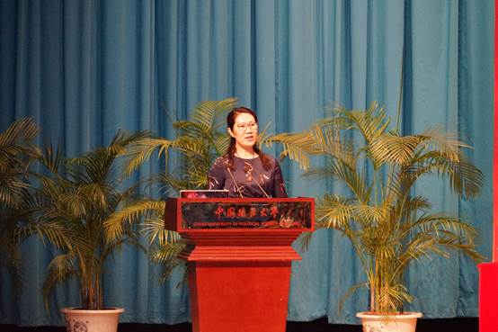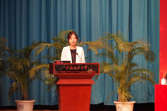 随后,新生家长代表闫吉女士发言。她感谢因为孩子的努力带给自己“法大学子的妈妈”这一光荣身份,并从妈妈的角度对同学们提出了三点期待:希望同学们永远能有一颗温暖的心,珍惜缘分,学会合作,懂得“共创、共学、共赢”,懂得生活;学会拥有一颗乐于学习的心,以学习为乐,静心学习;希望同学们拥有一颗勇敢的心,要悦纳自己,坚定信仰,勿随波逐流。