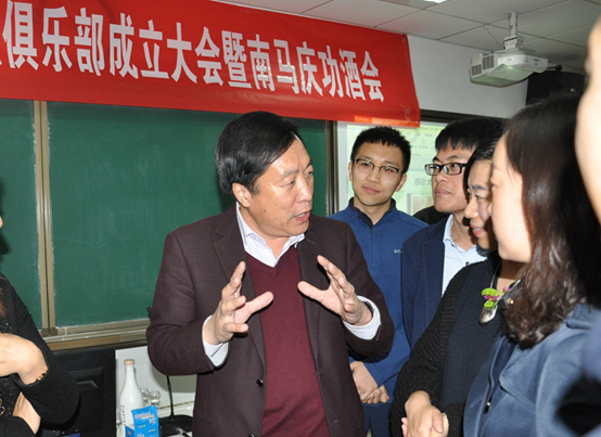 在随后的庆功酒会现场,2013级校友胡涓涓不仅与现场领导和校友分享了鲜为人知的酒文化,还组织了白酒品鉴会与现场校友进行交流。她将一款采用纯粮配方,大曲发酵,自然老熟的庄生晓梦诗酒花系列白酒赞助给马拉松俱乐部作为庆功酒。2014级校友、缘天然集团市场部经理祝洪涛向校友马拉松捐赠价值5000元的乳制品。