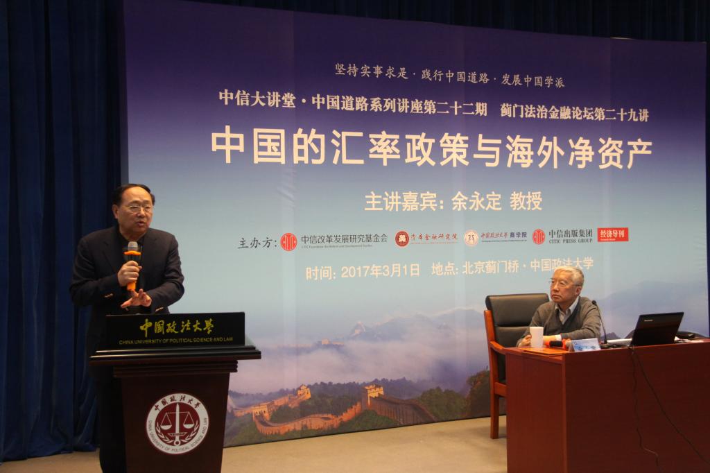 3月1日,蓟门法治金融论坛第二十九讲、中信大讲堂·中国道路系列讲座第二十二期《中国的汇率政策与海外净资产》在学院路校区科研楼学术报告厅成功举办。本次论坛主讲嘉宾是全国政协委员、中国社科院学部委员、中国世界经济学会会长余永定。由中信改革发展研究基金会理事长孔丹、中国政法大学书记石亚军致辞;由全国政协委员、前中国进出口银行行长李若谷,清华大学公共管理学院教授崔之元担任点评嘉宾。参加本次论坛的嘉宾还有前中共中央党史研究室副主任章百家、前中国证监会副主席李小雪、中国上市公司协会党委书记姚峰、人民日报内参部副主编饶文靖、中信改革发展研究基金会秘书长郭克彤、《经济导刊》杂志社社长季红,以及日本av-日本av现场