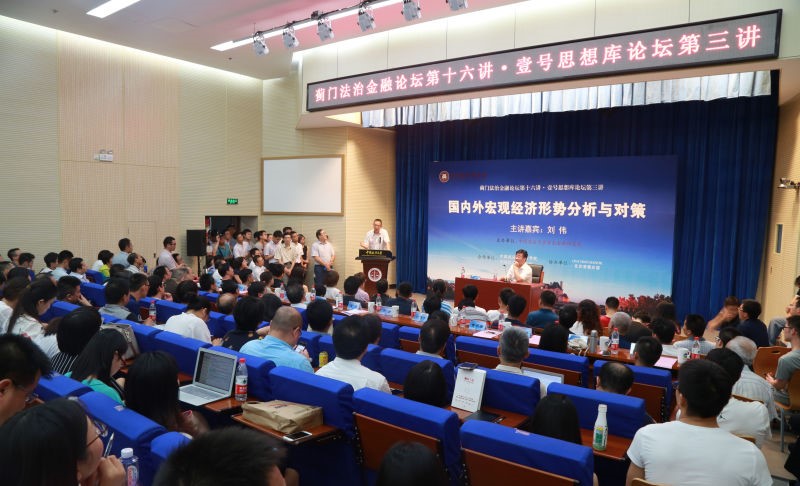 6月22日,中国政法大学资本金融研究院蓟门法治金融论坛第十六讲——《国内外宏观经济形势分析与对策》在学院路校区科研楼二层学术报告厅圆满落幕。本次论坛火爆空前,不但现场座无虚席,报告厅走廊、门外都挤满了热心听众,可谓“站无虚位”。本次论坛气氛轻松愉快,现场互动热烈,笑声连连,点燃了政法大学的学术激情,彰显了蓟门法治金融论坛高端、开放、务实的地位和吸引力。