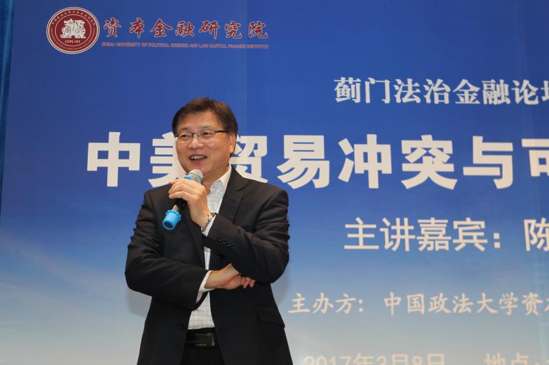 时建中为陈兴动颁发中国政法大学资本金融研究院兼职教授聘书并致辞,他指出中美贸易不平衡是常态,背后涉及到诸如国际形势、知识产权、倾销与反倾销、补贴与反补贴、垄断与反垄断等多种问题,而特朗普当选总统后又带来了新的表现。蓟门法治金融论坛有幸邀请到陈兴动教授,从国际投行首席经济学家的视角为我们厘清中国贸易冲突及其走向,并分析中国的可能应对,必将是一场珍贵的视听飨宴。