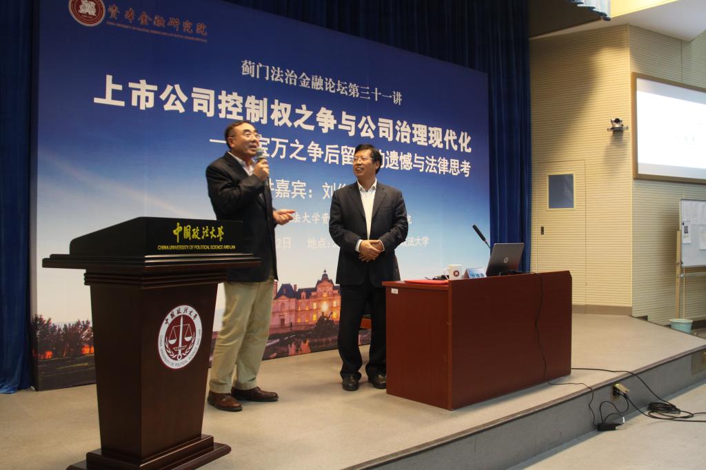 3月22日,蓟门法治金融论坛第三十一讲《上市公司控制权之争与公司治理现代化——宝万之争后留下的遗憾与法律思考》在学院路校区科研楼报告厅成功举办。本次主讲嘉宾是中国人民大学商法研究所所长刘俊海,中国政法大学教授李建伟、资本金融研究院兼职教授金岩石担任点评嘉宾。中国上市公司协会党委书记姚峰、中国证监会基金部主任刘健钧、清华大学公共管理学院教授崔之元、中国政法大学教授法学院副院长许身健、中国政法大学朱晓武、张苏彤、李泳、葛建华、黄立君、邓达、陈佳俊、马克态、武长海参加了本次论坛。本次论坛由日本av-日本av现场