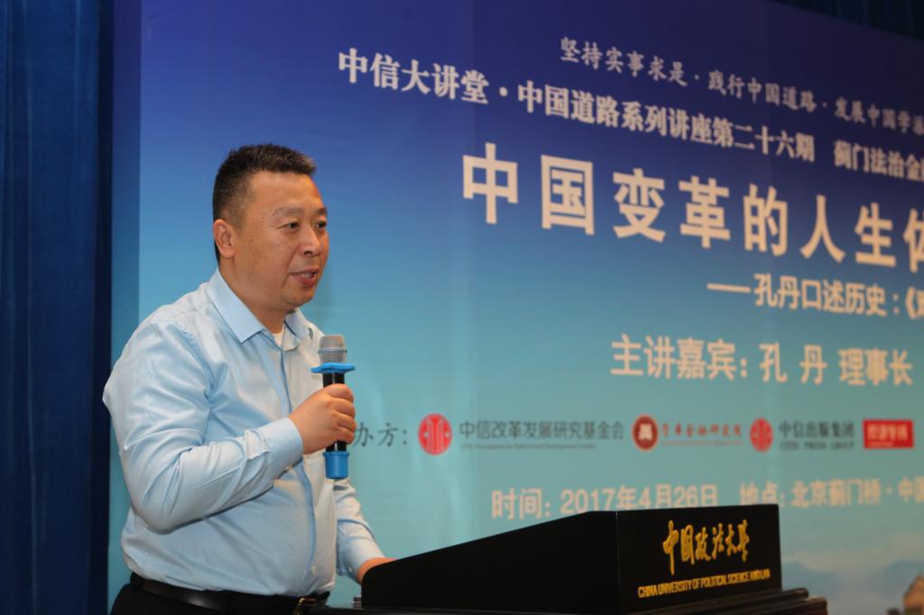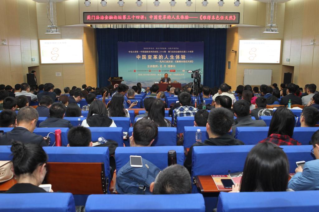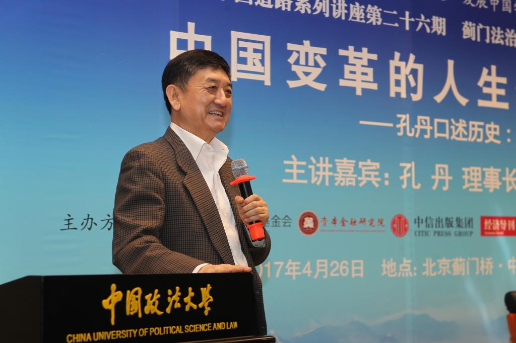 4月26日,蓟门法治金融论坛第三十四讲《中国变革的人生体验——孔丹口述历史:<难得本色任天然>》在我校学院路校区科研楼学术报告厅成功举办。本次论坛嘉宾是中信改革发展研究基金会理事长、中国中信集团原董事长、中国政法大学资本金融研究院理事孔丹。中国政法大学副校长时建中致辞。商务部原副部长安民、北京大学教授、博士生导师韩毓海、中国证监会原副主席李小雪教授担任点评嘉宾。中国政法大学校长黄进、国防大学少将、中国国防经济研究中心主任卢周来、国务院国有资产监督管理委员会副秘书长彭华岗、国资委研究中心主任楚序平、《经济导刊》杂志社社长季红等出席了论坛,法大30余位教授也参加了本次论坛。本次论坛由中国政法大学资本金融研究院院长、日本av