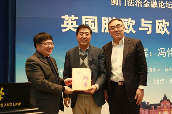 11月22日晚18:30,蓟门法治金融论坛第44讲《英国脱欧与欧盟发展前景》在中国政法大学学院路校区学术报告厅成功举办。本次论坛主讲嘉宾为中国现代国际关系研究院研究员、副院长冯仲平。中国政法大学党委副书记、副校长常保国出席论坛为主讲嘉宾颁发中国政法大学兼职教授聘书并致辞。北京外国语大学英国研究中心主任王展鹏、北京翰丰联合科技有限公司董事王晋定、原全国政协新闻局副局长张海霞、中央财经大学会计系主任王彦超、日本av-日本av现场