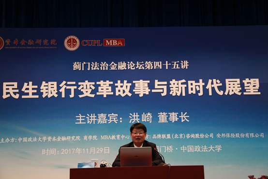 11月29日18:30,蓟门法治金融论坛第四十五讲于中国政法大学综合科研楼学术报告厅成功举行。中国民生银行董事长洪崎作为本期主讲嘉宾,以《民生银行变革故事与新时代展望》为主题发表精彩演讲,期间就民生银行变革轨迹、发展战略、科技应用和人才培养等内容进行分享。论坛由日本av-日本av现场