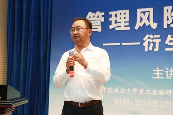 李克强总理在十三届人大政府报告中指出要“大力发展多层次资本市场“的同时”要发展债券和期货衍生品市场“。刘院长表示,期货及衍生品市场是资本市场的重要内容,而从金融生态环境看,期货、期权是比股票、债券更高层次的金融产品。期货衍生品市场在中国崛起中具有重要地位与作用,今日中国要强大,要想打好贸易战,获胜关键点在金融,而金融关键在于资本,资本则注重在于期货市场。中国政法大学作为高校孕育人才重地,法大学子若想成为日后实现中国梦的人才,此次讲座具有重大战略意义,可获得重要领悟。随后,刘院长就本次主讲嘉宾李正强教授进行了简要介绍。
