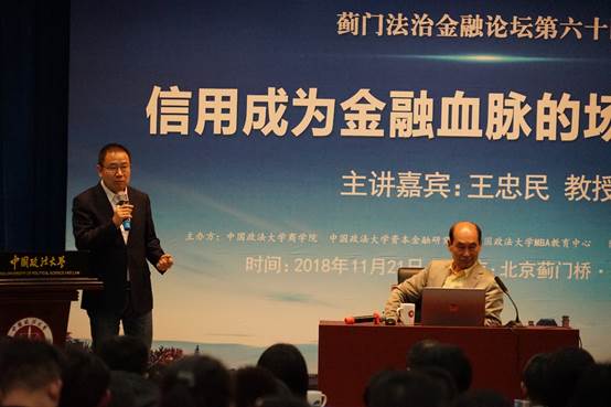 王忠民教授通过一系列的发问来引入论坛的主题——“谁是金融的血脉?”、“金融和实体是不是互为血脉?还是金融自身有一个血脉?”、“金融的这个血脉是信用吗?如果是信用,为什么是信用?”、“实体、金融和信用之间的关系应该怎样在现实世界中发挥有效作用?”这些问题引发了在场师生的强烈兴趣和深深思考。王忠民随即提出今晚论坛的核心观点——金融的血脉乃信用也。随后,王忠民具体从互联网中使用的“场景”和学术中使用的“逻辑”两个角度对这一观点进行了深入解读。