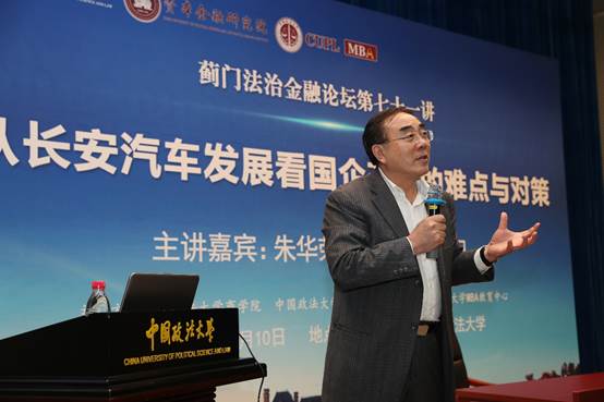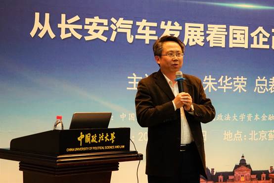 中国政法大学校长黄进首先向朱华荣先生颁发兼职教授聘书并致辞。黄进表示,当前,中国正在经历新的一轮改革开放,这将为国家带来巨大的变化。在这轮改革里国有企业如何改革、走向何方,是大家都关心的问题。朱华荣总裁从长安汽车的发展实践来讲国企改革,具有很强的现实意义。
