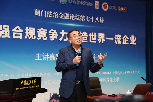 2019年10月16日,蓟门法治金融论坛第78讲在中国政法大学学院路校区学术报告厅如期举行。本期论坛邀请了北京新世纪跨国公司研究所所长、全国企业合规委员会副主席、联合国全球契约组织第十项原则专家组成员王志乐教授主讲,主题为:《增强合规竞争力,打造世界一流企业》。