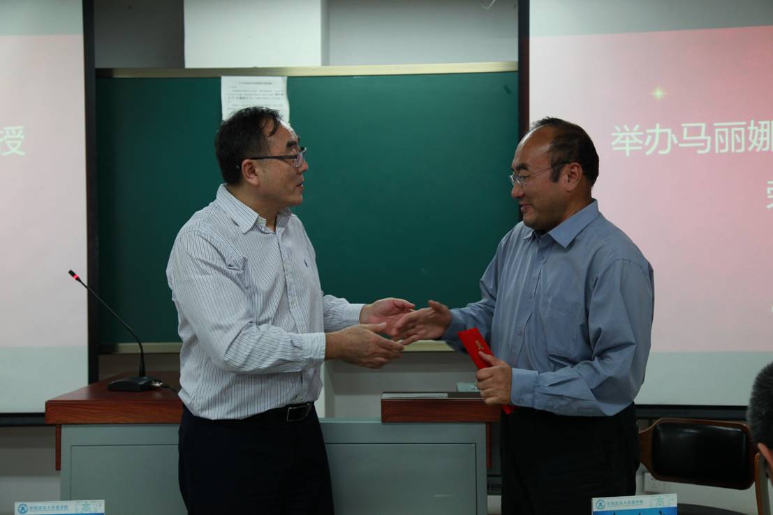 马丽娜和张苏彤两位教授的荣休仪式。刘纪鹏院长亲自给退休教师代表张苏彤教授颁发荣誉证书,感谢两位老师三十年来对政法大学和日本av