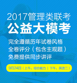为帮助大家充分熟悉管理类联考考试题型以及真实考试环境,中国政法大学MBA教育中心将组织免费公益模拟考试以帮助广大考生提升应试能力,发现复习过程中的不足之处,以便后续进行更加具有针对性的备考。
