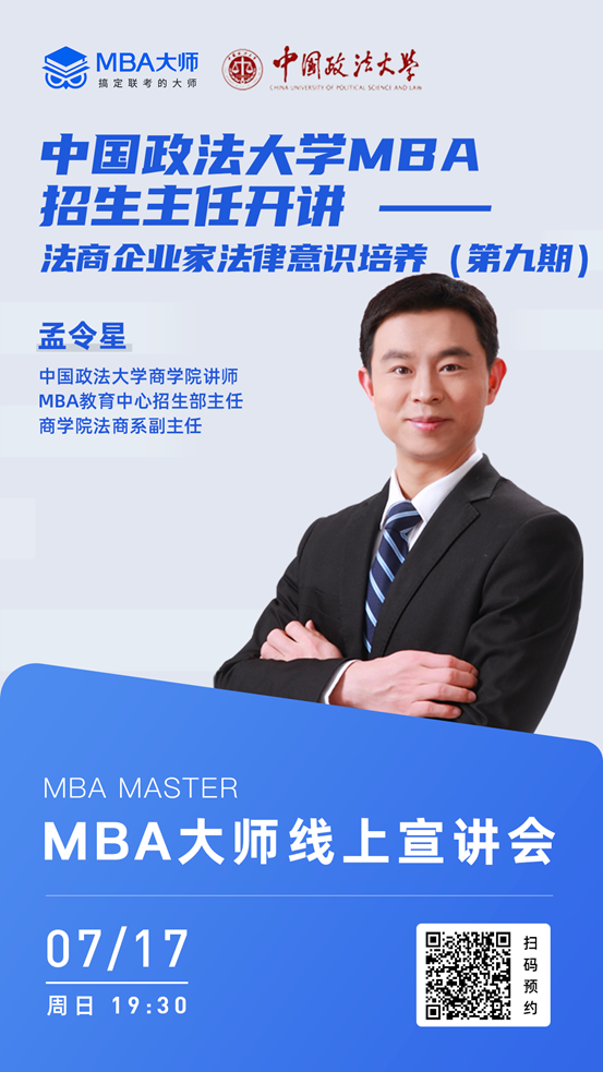 中国政法大学MBA招生主任开讲之法商企业家法律意识培养公开课(第九期)