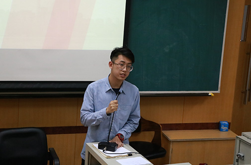 学生会主席王知行师兄简短介绍这一年在学生会工作中的收获,并表示这一年在生活中收获了来自这个大家庭满满的感动,同时他对学生会未来做出展望,希望学生会能越来越好。