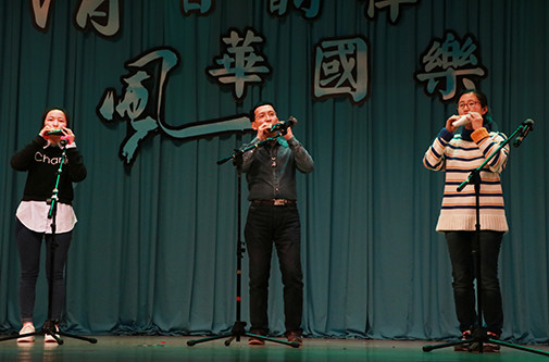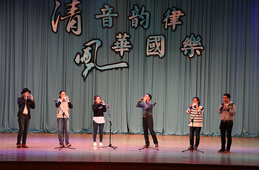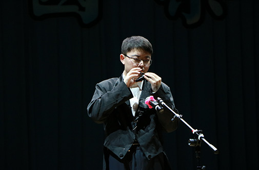 静谧之后,全场迎来了陶笛的喧腾,由赖达富老师带领的来自中国石油大学的同学们为我们演奏了《金蛇狂舞》《牛仔很忙》,他们极具开创性的赋予了陶笛更多流行音乐的特点,又加以精心的排练和高超的技巧掀起了晚会的高潮。