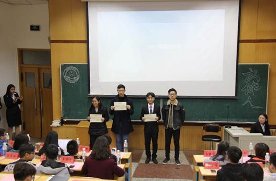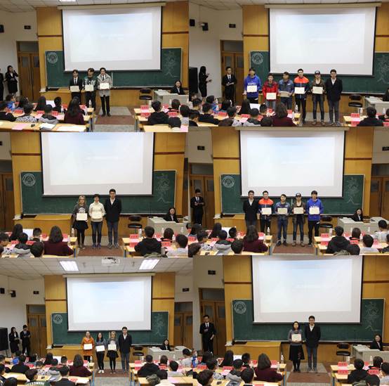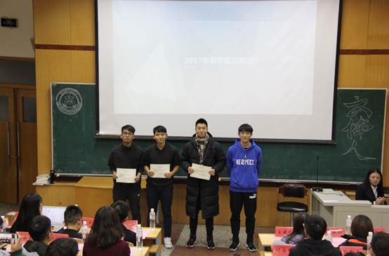 在为校级体育活动中表现优异的个人颁奖环节,由学生会一届十六任主席付浩楠颁发2017年校新生运动会奖项,学生会一届十五任主席王知行颁发2017年春季校运会奖项。