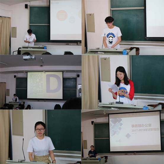 首先,各部门部长上台进行部门总体陈述,主要包括工作介绍、工作总结以及工作反思三个方面。部长们详细地介绍各自部门的职能与工作范围,同时总结了部门在一年工作中所取得的重大突破、举办的各项活动以及部门建设的基本状况,最后对部门工作的不足之处进行总结反思,并提出建设性的解决方案和下一年的工作目标。