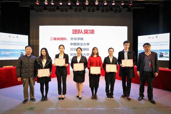 2018年10月27日,中国政法大学商谈队参加了“北邮杯”2018未来国际商务(英语)谈判精英赛,喜获二等奖,王思雨同学获得“优秀谈判手”称号。本次大赛由中国管理现代化研究会国际商务谈判专业委员会主办、北京邮电大学国际学院承办,于2018年10月27-28日在北京邮电大学进行。参与本次比赛的有中央财经大学、北京外国语大学、对外经济贸易大学、西安翻译学院等来自京内外的16所高校,近200名师生。