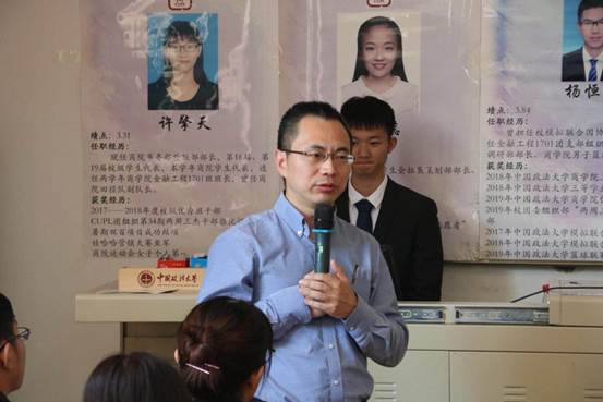 分党委书记李欣宇,分党委副书记何欣,院长助理熊金武,资本金融系主任程碧波,分团委副书记、2015级辅导员王晓曦,16级辅导员徐庆以及18级辅导员郑益群。