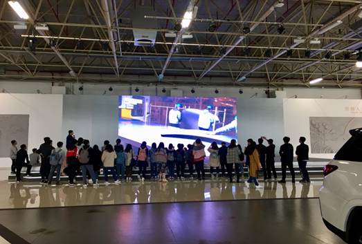 在讲解员的介绍中,师生们首先参观了公司的展示大厅,对长安汽车集团的历史和现状进行深入了解。展厅里,从我国第一台吉普车——长安CA-1958长江牌吉普,到当前在售的车型,再到富有未来感的概念车型,长安汽车持续创新和发展的简史生动地呈现在大家眼前。整个讲解过程内容丰富、生动有趣,同学们兴致盎然,并和讲解员积极互动。