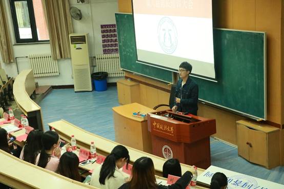 图:十七任学生委员会主任朗浚皓介绍工作经验