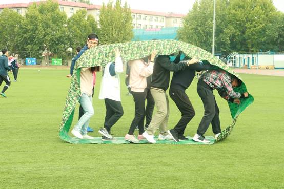 接下来,“无敌风火轮”的参赛者们一同站在一块环形布料中前进,因为被布遮住看不到前方,参赛者们的彼此配合便至关重要。所有参赛小组都在争取以最快的速度到达终点,他们前进的过程有的迅速,有的缓慢,但都在以自己独一无二的努力向终点线移动着。最终,国商1901班以最为默契的配合勇夺冠军。