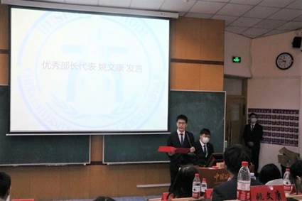 一届十八任优秀部长表彰,由一届十八任学委会主任杨恒懿为优秀部长代表颁奖。