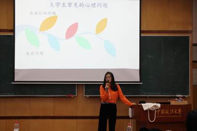 讲座伊始,魏旭晨对大学生常见的心理问题进行了总结和分析。魏旭晨强调,大学生常见的心理问题主要包括适应问题、自我认知问题、学业问题、情绪与压力问题、人际关系问题、情感问题以及升学就业问题等七个方面。同时,魏旭晨单独分析了过度自卑和苛求完美两大常见问题的特点和形成原因,并针对这两大问题提出了具体的应对措施。